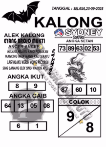 Syair Togel SydneyLotto 23 September 2025 berisikan syair-syair ternama seperti syair naga mas, syair putera bali, syair kampleng, dan syair mbah ompong, syair mbah toto, syair petruk, syair gareng, syair kalong, syair mbah bejo, syair JBR online, syair JBR malam, syair mbah tuntung, syair BD, syair amoy sakti, syair nenek keramat, dan lain-lain.